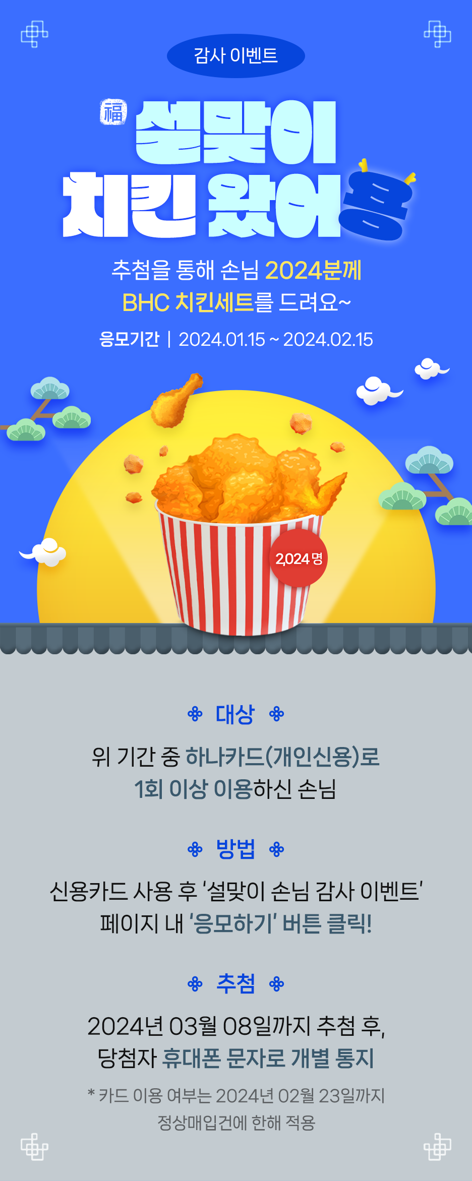 * Ä«µå ÀÌ¿ë ¿©ºÎ´Â 2024³â 02¿ù 23ÀϱîÁö Á¤»ó¸ÅÀÔ°Ç¿¡ ÇÑÇØ Àû¿ë.