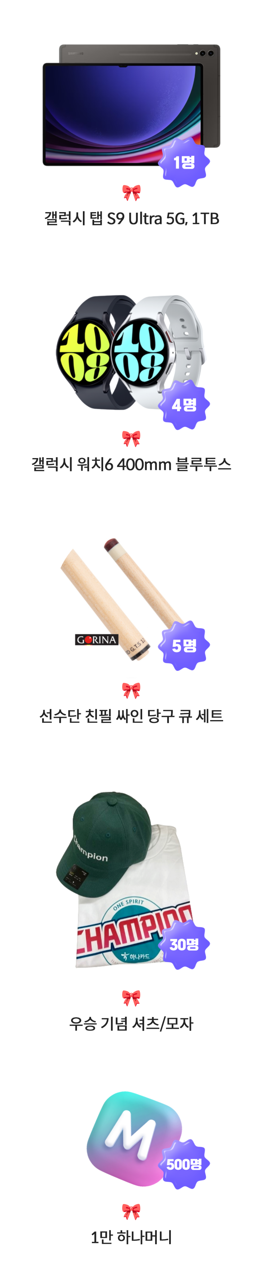 º» À̺¥Æ® ÀÀ¸ð ¹× °æÇ° Âü¿©´Â º»ÀΠȸ¿ø¸¸ °¡´ÉÇÕ´Ï´Ù. ÀÌ¿ë(½ÂÀÎ) ¿©ºÎ´Â ÀÀ¸ð ÀÏÀÚ¿Í °ü°è¾øÀÌ À̺¥Æ® ±â°£ Áß ÀÌ¿ëÇÑ °Ç¿¡ ÇÑÇÕ´Ï´Ù. º» À̺¥Æ®ÀÇ Ä«µå ÀÌ¿ë ¿©ºÎ´Â 2024³â 3¿ù 6ÀϱîÁö Á¤»ó ¸ÅÀÔ °Ç¿¡ ÇÑÇÏ¿© Àû¿ëµÇ¸ç, Àå/´Ü±âÄ«µå´ëÃâ, Åë½Å¿ä±Ý.¾ÆÆÄÆ® °ü¸®ºñ µî ¹«½ÂÀÎ ¸ÅÀÔ °Ç ¹× »óǰ±Ç ¾÷Á¾/Æ÷ÀÎÆ® ÃæÀü(Çϳª¸Ó´Ï °áÁ¦, ÀºÇà °èÁ°áÁ¦ Æ÷ÇÔ), ¿¬È¸ºñ ³³ºÎ, ÇÏÀÌÆÐ½º, ±³ÅëÄ«µå(ÈĺÒ/ÃæÀü)Àº Âü¿©°¡ Á¦¿ÜµË´Ï´Ù. (¾÷Á¾ ±¸ºÐÀº ÇϳªÄ«µå¿¡ µî·ÏµÈ °¡¸ÍÁ¡ ±âÁØ¿¡ µû¸£¸ç ÇϳªÄ«µå ȨÆäÀÌÁö ¶Ç´Â °í°´¼¾ÅÍ¿¡¼ È®ÀÎÇÏ½Ç ¼ö ÀÖ½À´Ï´Ù) °¶·°½Ã ÅÇ ¶Ç´Â °¶·°½Ã ¿öÄ¡ °æÇ° ´ç÷ ½Ã, ÇϳªÄ«µå¿¡ µî·ÏµÇ¾î ÀÖ´Â ÈÞ´ëÆù¹øÈ£·Î °æÇ° ¼ö·ÉÀ» À§ÇÑ ¼ö·ÉÁö ÀÛ¼º URLÀÌ Æ÷ÇÔµÈ ¹®ÀÚ ¹ß¼Û ¿¹Á¤ÀÔ´Ï´Ù. ´ç±¸ Å¥ ¼¼Æ®, ¶Ç´Â ¿ì½Â ±â³ä ¼ÅÃ÷/¸ðÀÚ °æÇ° ´ç÷ ½Ã, ÇϳªÄ«µå¿¡ µî·ÏµÇ¾î ÀÖ´Â ÈÞ´ëÆù¹øÈ£·Î °æÇ° ¼ö·É ¾È³» ¹®ÀÚ°¡ ¹ß¼ÛµÉ ¿¹Á¤ÀÔ´Ï´Ù. À̺¥Æ®¿¡ ´ç÷µÈ °æ¿ì, ÇϳªÄ«µå¿¡ µî·ÏµÇ¾î ÀÖ´Â ÈÞ´ëÆù¹øÈ£·Î ¾È³» ¹®ÀÚ ¹ß¼Û ¿¹Á¤ÀÌ¿À´Ï, ÇϳªÄ«µå ȨÆäÀÌÁö¿¡¼ Ãֽа³ÀÎ Á¤º¸·Î ¼öÁ¤ ÈÄ ÀÀ¸ðÇϽñ⠹ٶø´Ï´Ù. °æÇ° ¼ö·É ¾È³» ¹®ÀÚ Àü¼Û ÈÄ ÈÞ´ëÆù º¯°æ ½Ã ÀçÀü¼ÛµÇÁö ¾Ê½À´Ï´Ù. ´ç÷ ¾È³» ¹®ÀÚ¸¦ ¹ÞÀ¸¼Åµµ °æÇ° ¹ß¼Û ¶Ç´Â ¸ð¹ÙÀÏ ±³È¯±Ç Àü¼Û ´ç½Ã ÇϳªÄ«µå ȸ¿ø Żȸ ½Ã °æÇ° Á¦°øÀÌ ¾î·Æ½À´Ï´Ù. °æÇ°ÀÇ ¸íÀÇ º¯°æ, À¯È¿±â°£ ¿¬Àå, Àç¹ß¼Û, ±³È¯ ¹× ȯºÒÀÌ ºÒ°¡ÇÕ´Ï´Ù. °æÇ°¿¡ ´ëÇÑ Á¦¼¼°ø°ú±ÝÀº ÇϳªÄ«µå¿¡¼ ºÎ´ãÇÕ´Ï´Ù. À§ °æÇ° À̹ÌÁö´Â ÀÌÇØ¸¦ µ½±â À§ÇÔÀ̸ç, ½ÇÁ¦ °æÇ°ÀÇ »ö»ó ¹× ¼¼ºÎ ¸ðµ¨Àº º¯°æµÉ ¼ö ÀÖ½À´Ï´Ù. ÇϳªÄ«µå ¹× Á¦ÈÞ»çÀÇ »çÁ¤À¸·Î Çà»ç ³»¿ëÀÌ º¯°æ ¶Ç´Â Áß´ÜµÉ ¼ö ÀÖÀ¸¸ç, ÀÌ °æ¿ì ÇØ´ç ȨÆäÀÌÁö¿¡¼ È®ÀÎÇÏ½Ç ¼ö ÀÖ½À´Ï´Ù. ºÎÁ¤ÇÑ ¹æ¹ýÀ¸·Î À̺¥Æ®¿¡ Âü¿©ÇÑ °æ¿ì °æÇ° ´ç÷Àº Ãë¼ÒµÉ ¼ö ÀÖ½À´Ï´Ù. °è¾à ü°á Àü »óǰ ¼³¸í¼ ¹× »óǰ ¾à°üÀ» ¹Ýµå½Ã È®ÀÎÇϽñ⠹ٶø´Ï´Ù. ½Å¿ëÄ«µå ¹ß±ÞÀÌ ºÎÀûÁ¤ÇÑ °æ¿ì(°³ÀνſëÆòÁ¡ ³·À½ µî) Ä«µå¹ß±ÞÀÌ Á¦ÇÑµÉ ¼ö ÀÖ½À´Ï´Ù. Ä«µåÀÌ¿ë´ë±Ý°ú ÀÌ¿¡ ¼ö¹ÝµÇ´Â ¸ðµç ¼ö¼ö·á¸¦ ÁöÁ¤µÈ ´ë±Ý°áÁ¦ÀÏ¿¡ »óȯÇÏ¿©¾ß ÇÕ´Ï´Ù. ±ÝÀ¶¼ÒºñÀÚ´Â ÇØ´ç »óǰ ¶Ç´Â ¼ºñ½º¿¡ ´ëÇÏ¿© ¼³¸íÀ» ¹ÞÀ» ±Ç¸®°¡ ÀÖ½À´Ï´Ù.